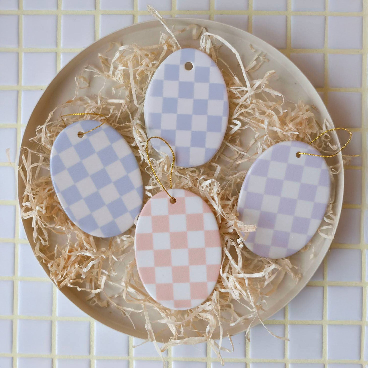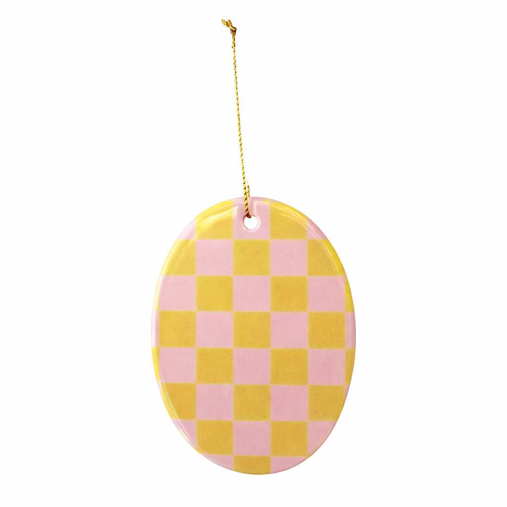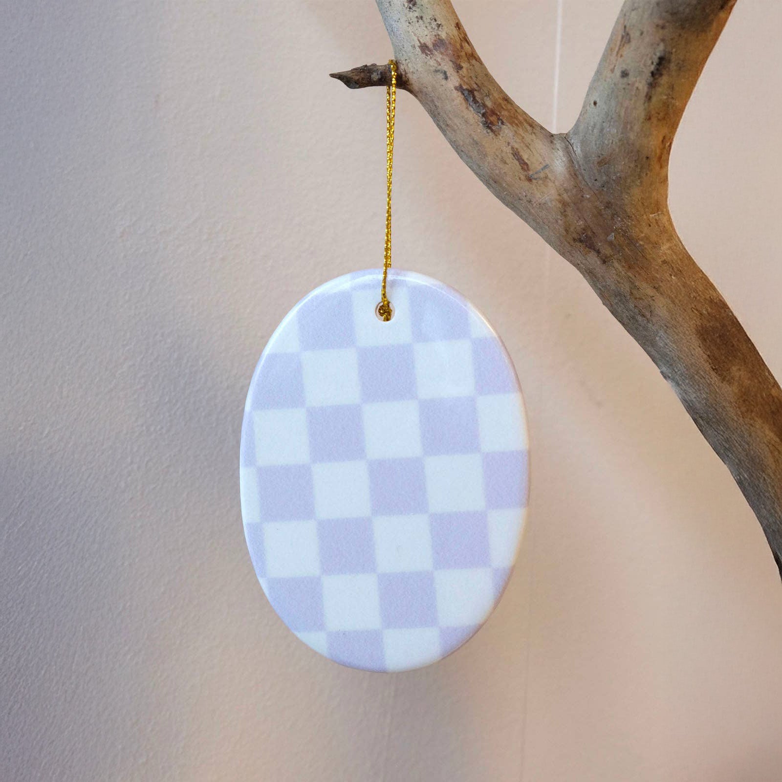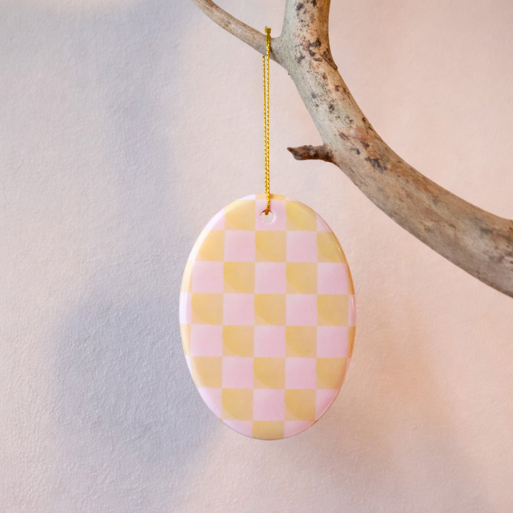 Der Keramik-Anhänger überzeugt durch sein reduziertes Design und die harmonische Kombination aus Form und Muster. Das Karo-Motiv verleiht ihm eine grafische, moderne Wirkung, die sich wunderbar in unterschiedliche Wohnstile einfügt – von minimalistisch bis verspielt.