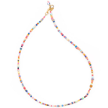 Eine sommerliche Kette für Vagabund*innen - für die MONDO Kette sind wir tief in unseren Perlenfundus getaucht, um den schönsten Mix an Glasperlen aus aller Welt für dich zusammen zu stellen. Darin findest du zum Beispiel afrikanische und nordamerikanische "Trade Beads" oder tschechische und japanische Glasperlen, die teilweise schon mehrere Jahrzehnte alt sind. Jede Kette ist ein Unikat, da die Zusammenstellung der Perlen ein wenig variieren kann. (Text: SAN SAN)