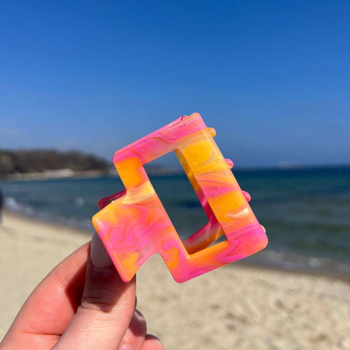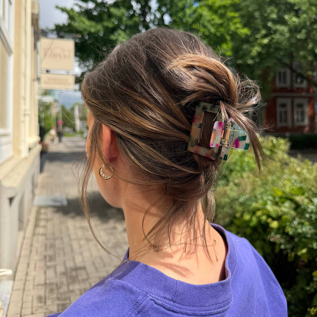 Die Square Haarklammer verbindet Funktionalität mit zeitgemäßem Design. Ob lässig hochgesteckt, halb offen oder als modisches Detail – sie hält dein Haar zuverlässig zusammen und verleiht deinem Styling einen frischen, modernen Touch.