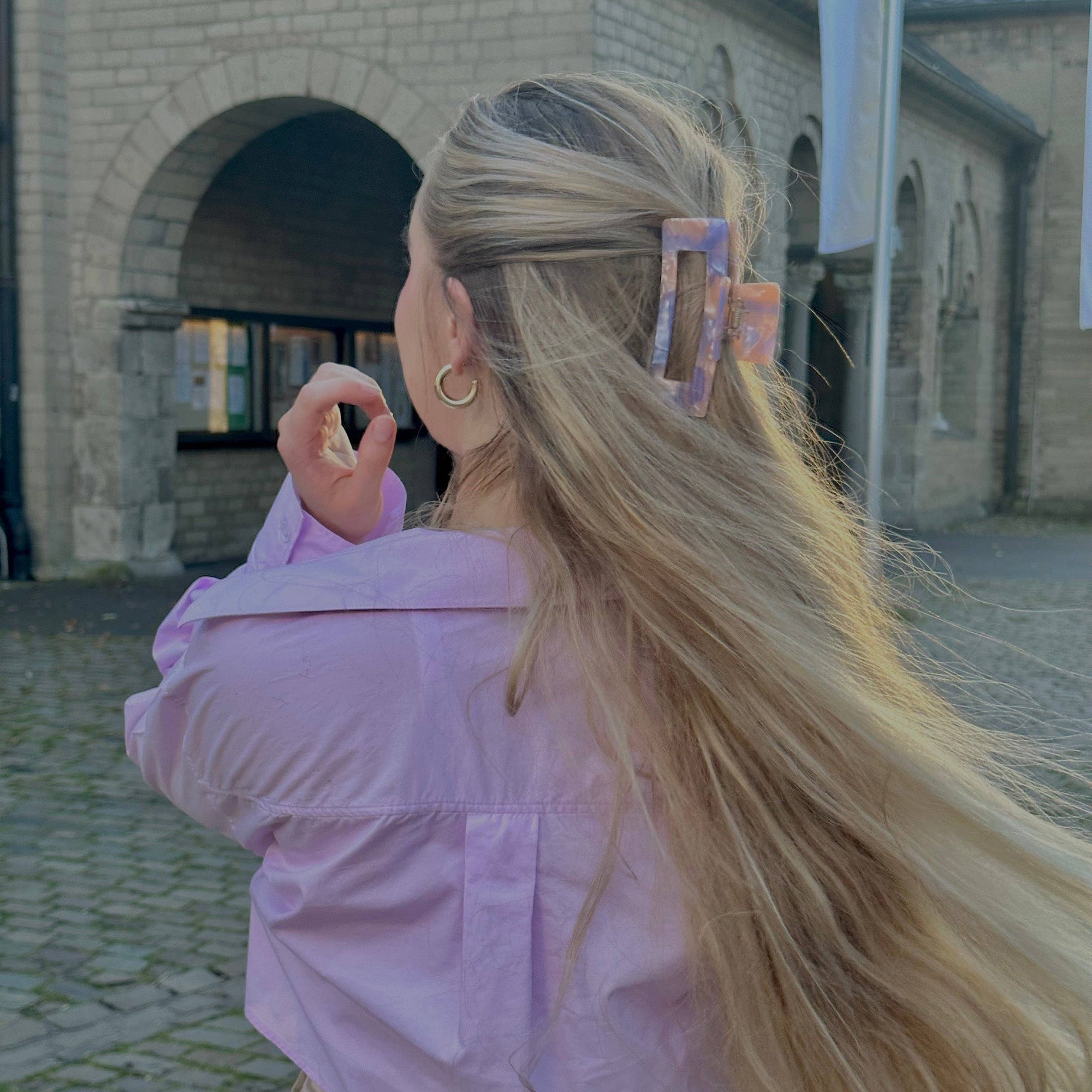 Die extragroße Haarklammer ist gemacht für alle, die sich trauen, aufzufallen. Mit ihrer XL-Größe hält sie dein Haar zuverlässig zusammen – egal ob Dutt, Half-Up oder lässig hochgesteckt.