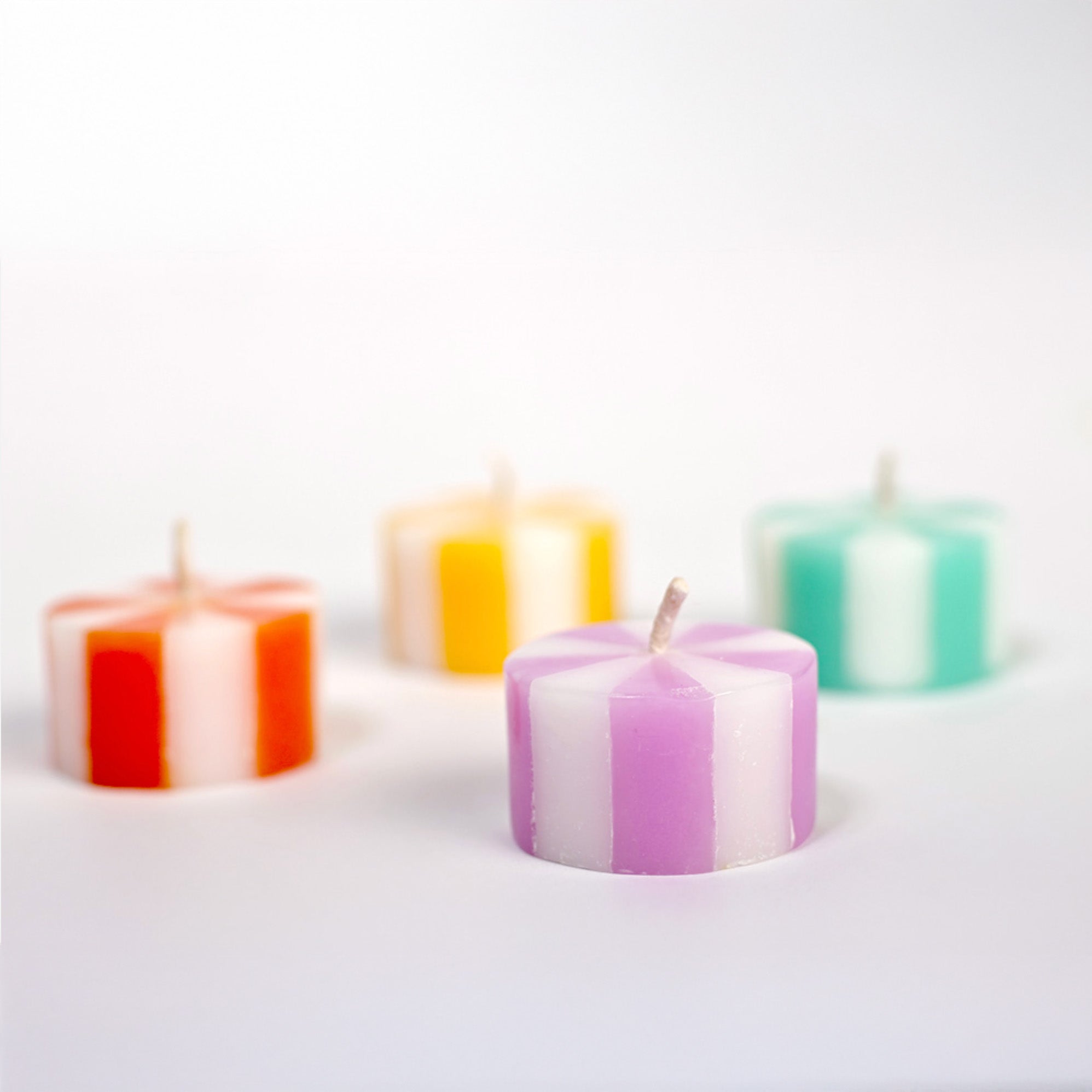 Klein und fröhlich sind sie. Die farbig durchgefärbten Mini-Kerzen erinnern in Größe und Farbe an kleine Bonbons. Ideal als Geburtstagslicht, im Adventskalender oder für zwischendurch.